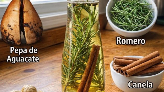 - Añade la pepa de aguacate, el romero, el jengibre, la canela y los clavos de olor.